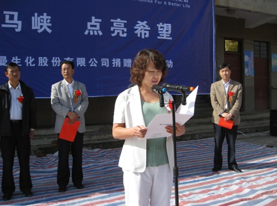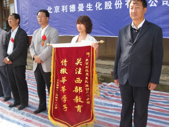 马峡,甘肃—— 2010年9月7日,B体育向甘肃省平凉市华亭县马峡中心小学无偿捐赠了价值十万元的钢木课桌椅。B体育副总经理张雅丽、华亭县县委常委、副县长徐德才、华亭县教育局局长陶玉宏等出席了捐赠仪式。马峡中心小学校长杜安平向B体育公司赠送了锦旗,表达感激之情。